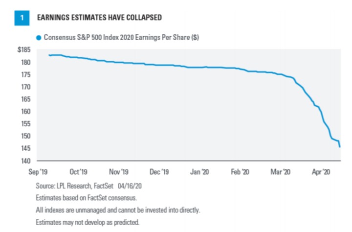 All about guidance and scenarios. With so many companies pulling their outlooks, analysts and strategists forecasting in this environment have had to do some guessing. Given the uncertainty, investors will be looking for help developing credible scenarios depending on how long the stay-at-home orders remain in place. Every country and state is in a different place, increasing forecasting difficulty.