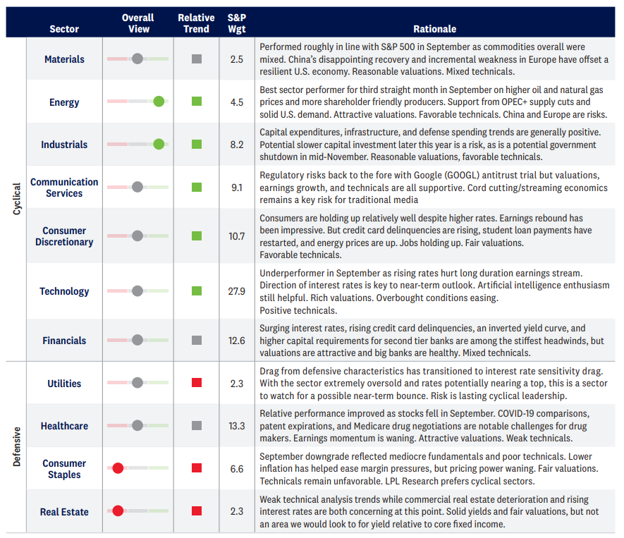 As discussed in our Midyear Outlook 2023: The Path Toward Stability, the LPL Research Strategic and Tactical Asset Allocation Committee (STAAC) sees them risk-reward trade-off between equities and fixed income as roughly balanced given elevated equity valuations and higher yields.