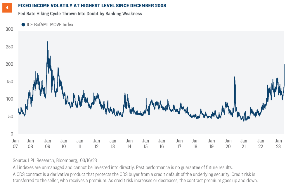 In response to ongoing market volatility, we would consider adding preferred securities exposure to fixed income allocations. At this point, we are taking a wait and see approach on the banks while closely watching the latest developments. The technology sector looks better to us here, while precious metals warrant consideration on the long side.